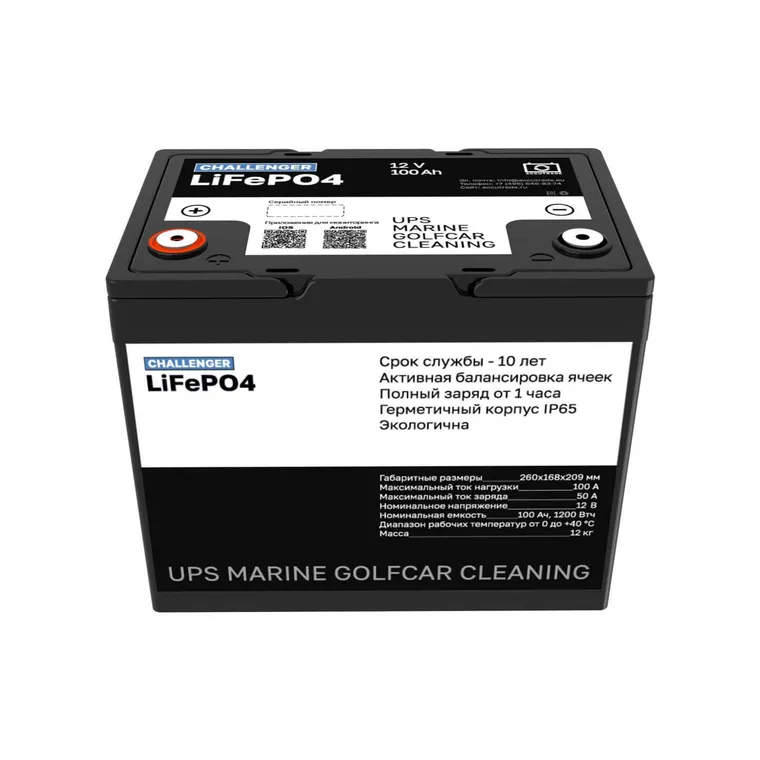 Литий-железо-фосфатный аккумулятор Challenger LFP 12V 100Ah - универсальное решение для различных сфер применения: водно-моторный транспорт, электромобили, системы альтернативной энергетики, ИБП, системы безопасности, медицина и связь. Батарея оснащена интеллектуальной BMS с мониторингом по Bluetooth, имеет компактные размеры и обеспечивает высокую производительность и более 2000 циклов заряда-разряда при DoD 80%.