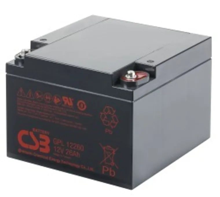 GPL 12260 - батарея общего применения со сроком службы 8 лет (6-9 лет при 20°С по классификации Eurobat) в буферном режиме или более 260 циклов заряда-разряда в циклическом режиме при 100% разряде. Как и все батареи CSB, она перезаряжаемая, высокоэффективная и не требующая обслуживания.