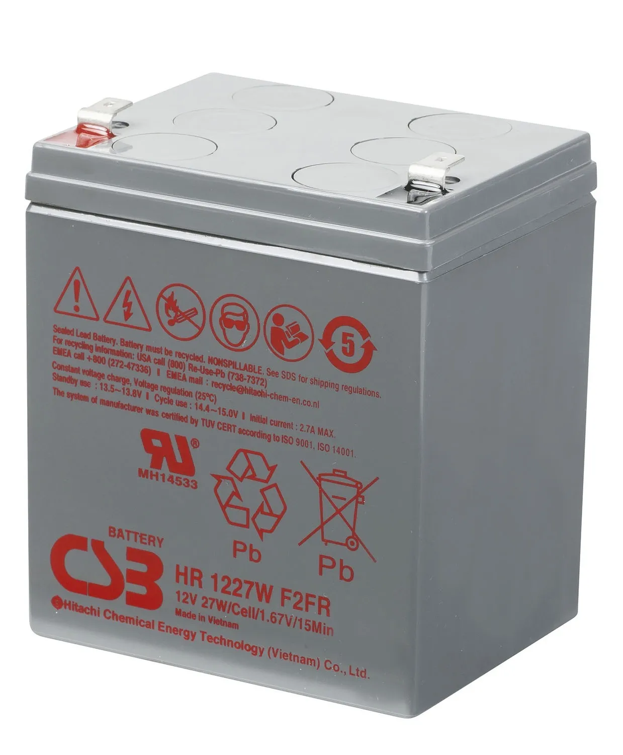 HR1227W - батарея с высокой энергоемкостью. Особенная кристаллическая решетка электродов позволила увеличить на 20% отдаваемую мощность по сравнению с батареями других серий. Она разработана для эксплуатации в режиме высоких токов разряда при коротком времени разряда. Срок службы: 5 лет в буферном режиме или более 260 циклов заряда-разряда в циклическом режиме при 100% разряде.