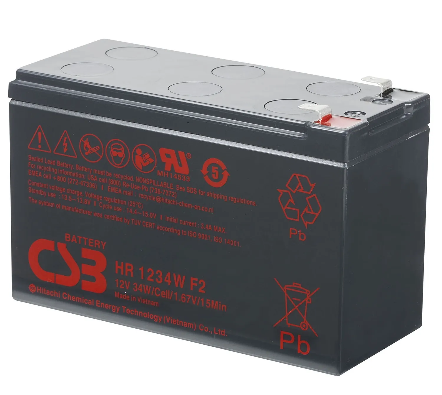 Аккумулятор CSB HR1234W - батарея большой мощности со сроком службы в буферном режиме до 5 лет при температуре 25 °С или до 260 циклов до 100% разряда при работе в циклическом режиме. Их используют в качестве резервного питания промышленного оборудования, источниках бесперебойного питания (UPS), системах охранной и пожарной сигнализации, портативном измерительном оборудовании, электроприборах и другом оборудовании.