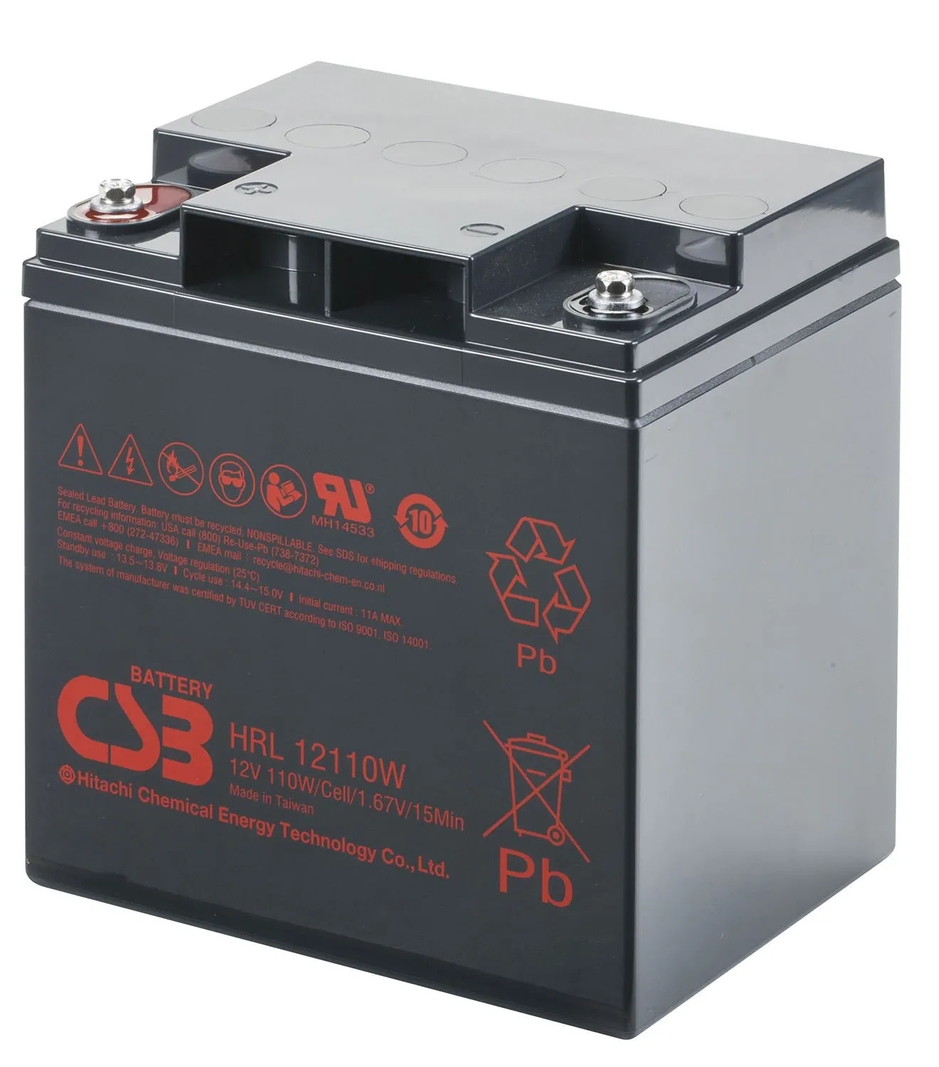 Аккумулятор CSB HRL12110W - батарея высокой мощности и увеличенным по сравнению с серией HR сроком службы до 10 лет (10-12 лет при 20°С по классификации Eurobat) или до 260 циклов до 100% разряда при работе в циклическом режиме. Используются в качестве резервного питания промышленного оборудования, источниках бесперебойного питания (UPS), системах охранной и пожарной сигнализации, портативном измерительном оборудовании, электроинструментах, гольфкарах, газонокосилках, электроприборах и другом оборудовании.