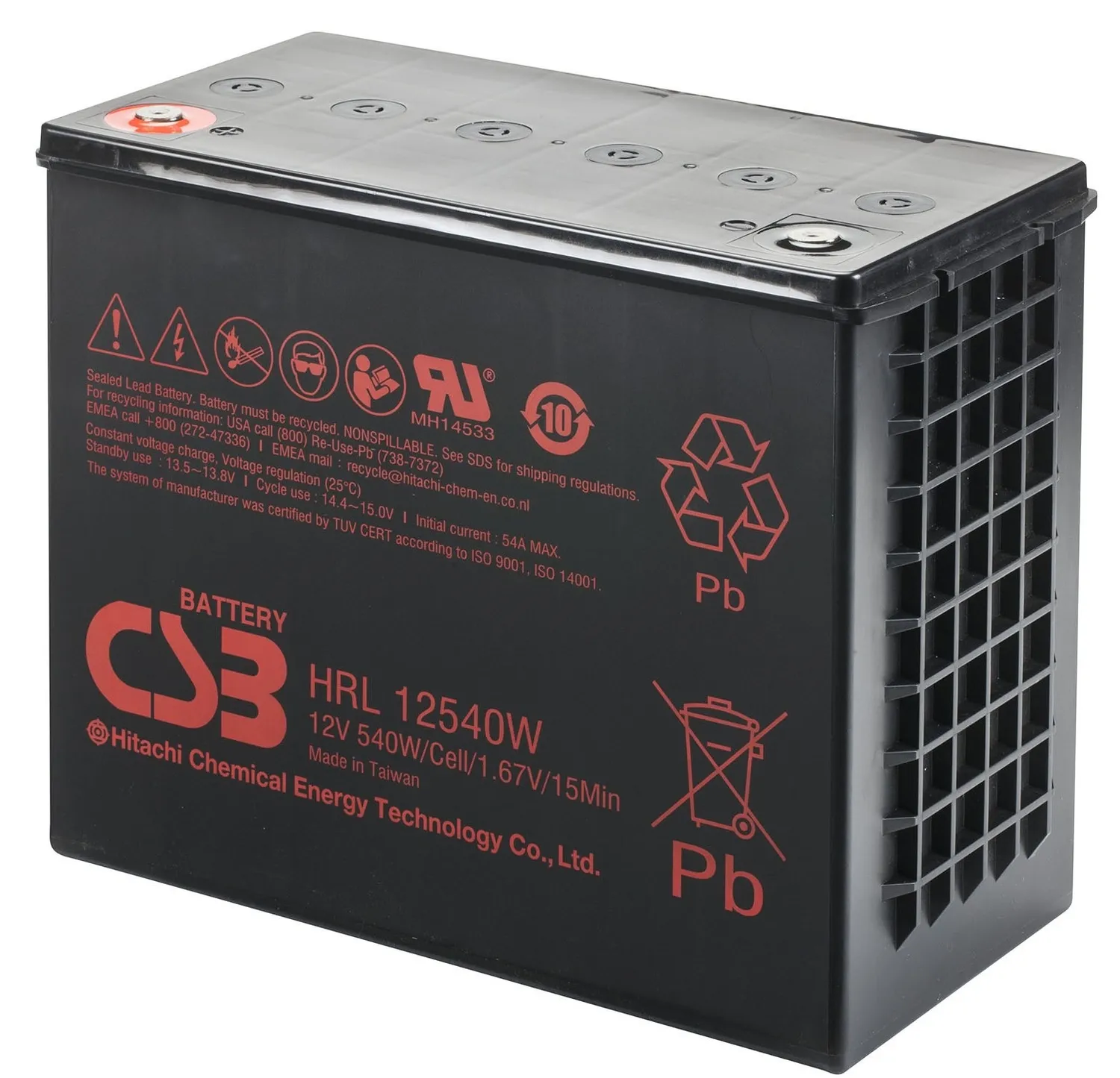 Аккумулятор CSB HRL12540W - батарея высокой мощности и увеличенным по сравнению с серией HR сроком службы до 10 лет (10-12 лет при 20°С по классификации Eurobat) или до 260 циклов до 100% разряда при работе в циклическом режиме. Используются в качестве резервного питания промышленного оборудования, источниках бесперебойного питания (UPS), системах охранной и пожарной сигнализации, портативном измерительном оборудовании, электроинструментах, гольфкарах, газонокосилках, электроприборах и другом оборудовании.
