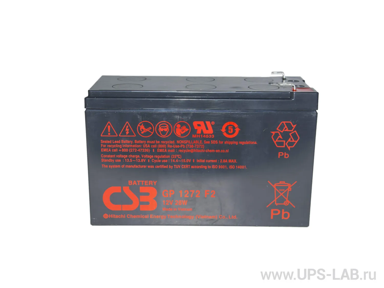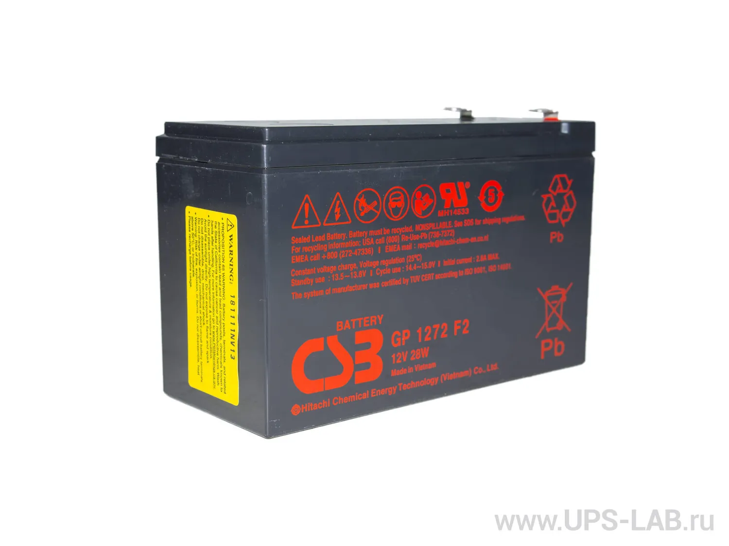 GP 1272 - батарея общего применения со сроком службы 5 лет в буферном режиме или более 260 циклов заряда-разряда в циклическом режиме при 100% разряде. Как и все батареи CSB, она перезаряжаемая, высокоэффективная и не требующая обслуживания.