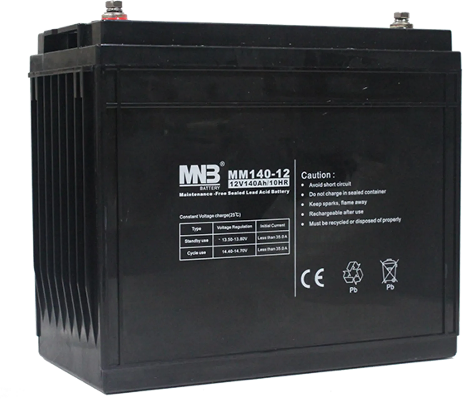 АКБ MNB MM 140-12 предназначены для устройств общего назначения, таких как UPS, телекоммуникации, электроэнергетической промышленности, солнечной энергетики, систем запуска генератора. Расчетный срок службы 10 лет. Батареи соответствуют самым популярным международным стандартам, таким как IEC896-2, BS6290-4, Евробат.