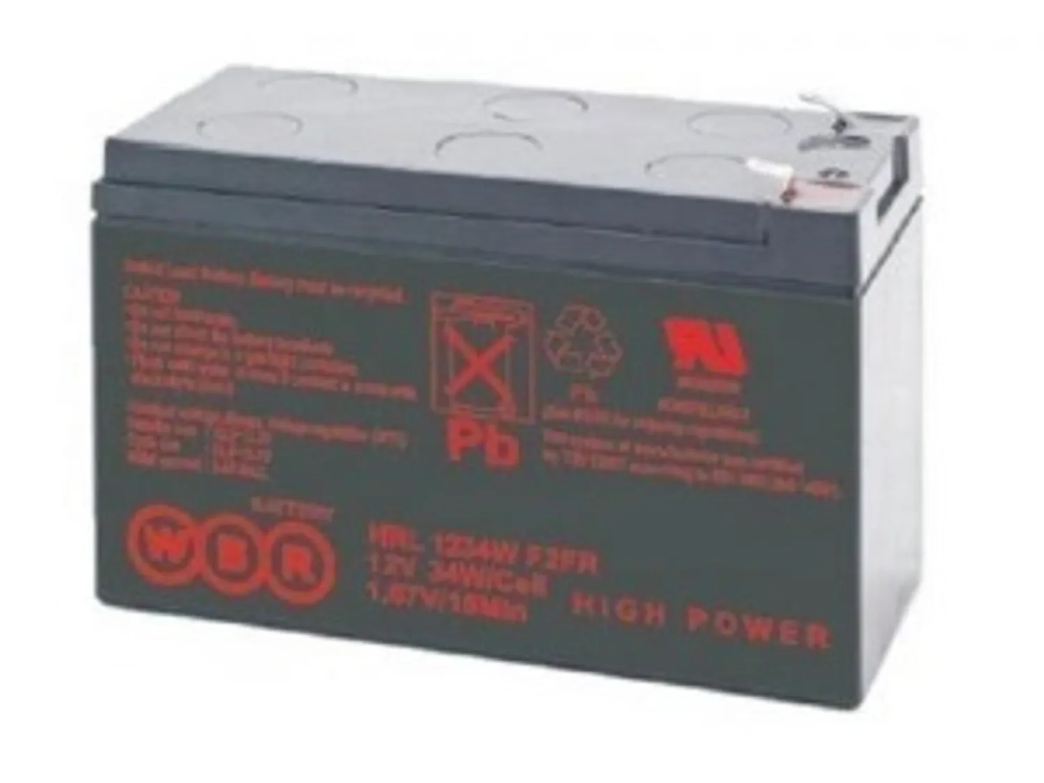 Аккумуляторные батареи WBR HRL1234W - батареи высокой мощности и увеличенным по сравнению с серией HR сроком службы до 12 лет или до 450 циклов до 50% разряда при работе в циклическом режиме.. Их используют в качестве резервного питания промышленного оборудования, источниках бесперебойного питания (UPS), системах охранной и пожарной сигнализации, портативном измерительном оборудовании, электроприборах и другом оборудовании.
