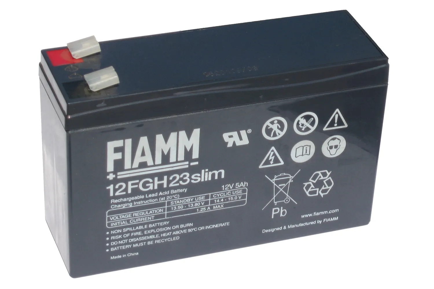 Аккумуляторы FIAMM 12FGH23 slim широкого профиля применения со сроком службы не менее 5 лет. Области применения: Системы бесперебойного питания ИБП / UPS, телекоммуникации, охранные и пожарные сигнализации, медицинское оборудование, электрокаляски, электроинструмент, приборы, игрушки и т.д. Имеют сертификаты: Декларация соответствия ГОСТ, Санитарно-эпидемилогическое заключение, CCC, Заключение ВНИИПО.