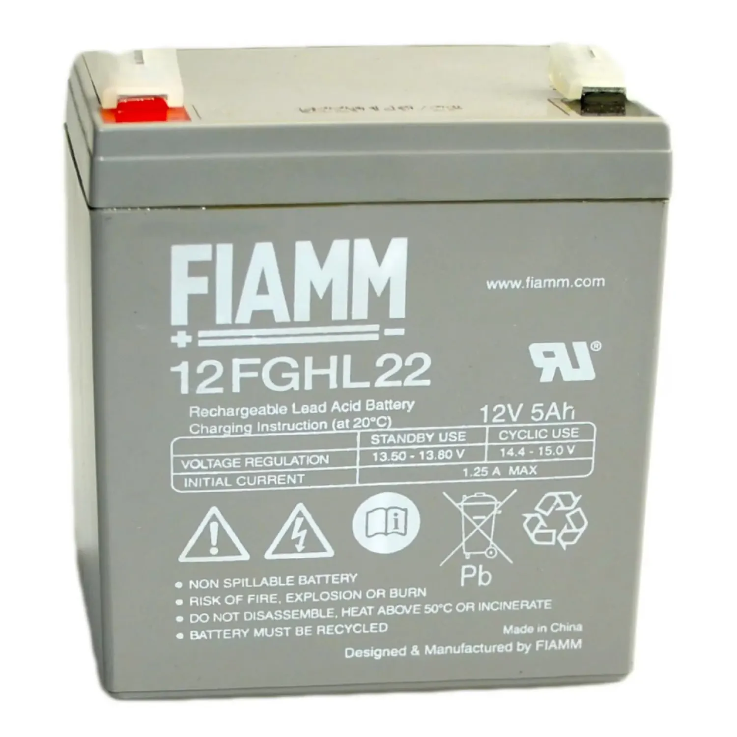 Особенности: Аккумуляторы FIAMM FGL / FGHL (VRLA AGM) - свинцово-кислотные 12 Вольтовые моноблоки емкостью от 5Ач до 205Ач. Серии аккумуляторов FGL / FGHL разработаны для применения в ИБП, системах охранно-пожарной сигнализации и освещения, накопления энергии от возобновляемых источников.Аккумуляторы FGL / FGHL идеально подходят как для быстрого разряда высокоми токами, так и для длительного разряда малыми и средними токами. Обладают продолжительным сроком службы: не менее 10 лет при температуре 20°C (остаточная ёмкость 80%). Аккумуляторы серии FGL / FGHL отличаются высокой надежнотью и отказоустойчивостью, отличными разрядными и эксплуатационными характеристиками, низким уровнем саморазряда и газовыделения.