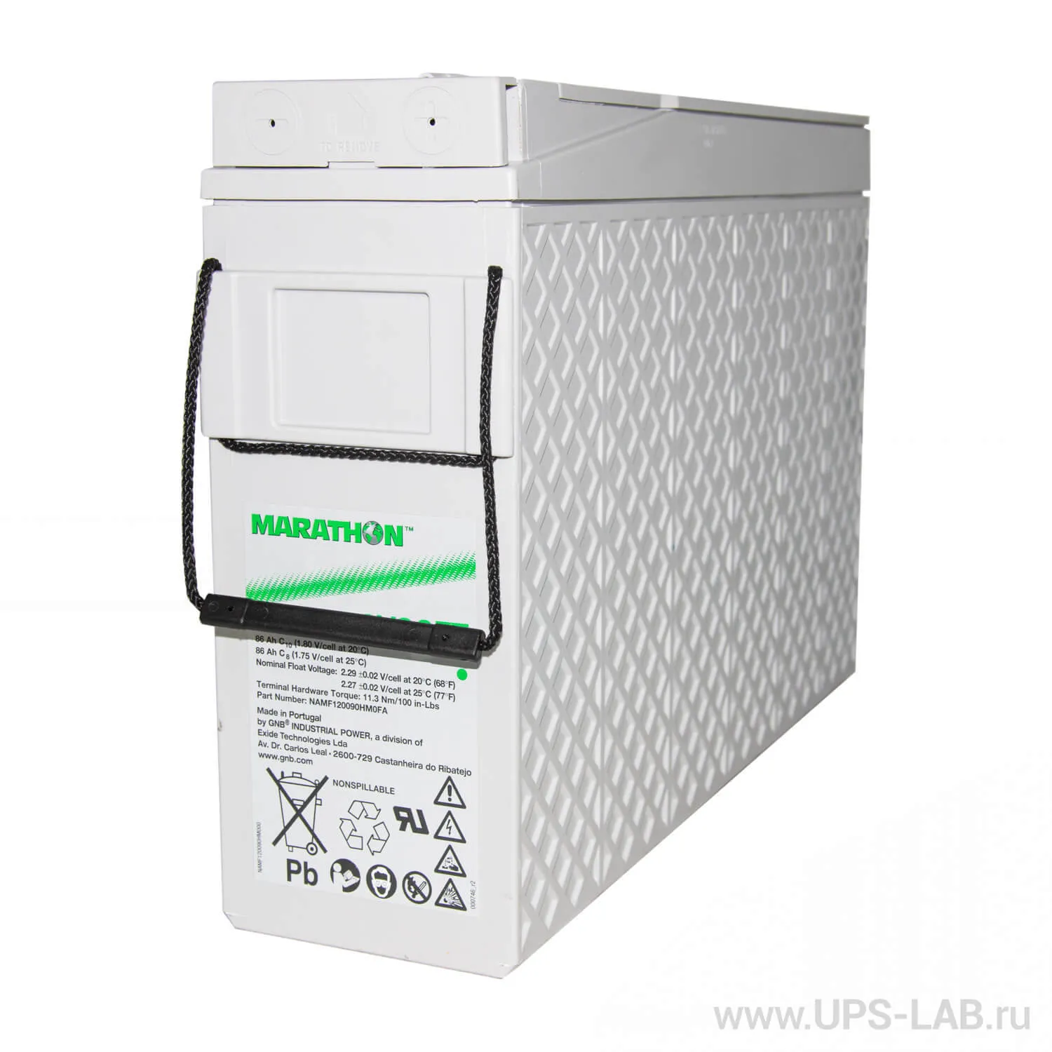 Аккумуляторы Marathon M12V90 FT HB ( 12V 86Ah / 12В 86Ач ) изготовлены по технологии AGM (жидкий электролит, впитанный в стекловолоконный сепаратор). Разработаны для размещения в специальных шкафах и стойках. Удобное обслуживание благодаря фронтальному расположению борнов.Срок службы - 12 лет при температуре окружающей среды 20°C (остаточная емкость 80%). Области применения: телекоммуникация и связь, источники бесперебойного питания (ИБП), производство и распределение электроэнергии, железная дорога.