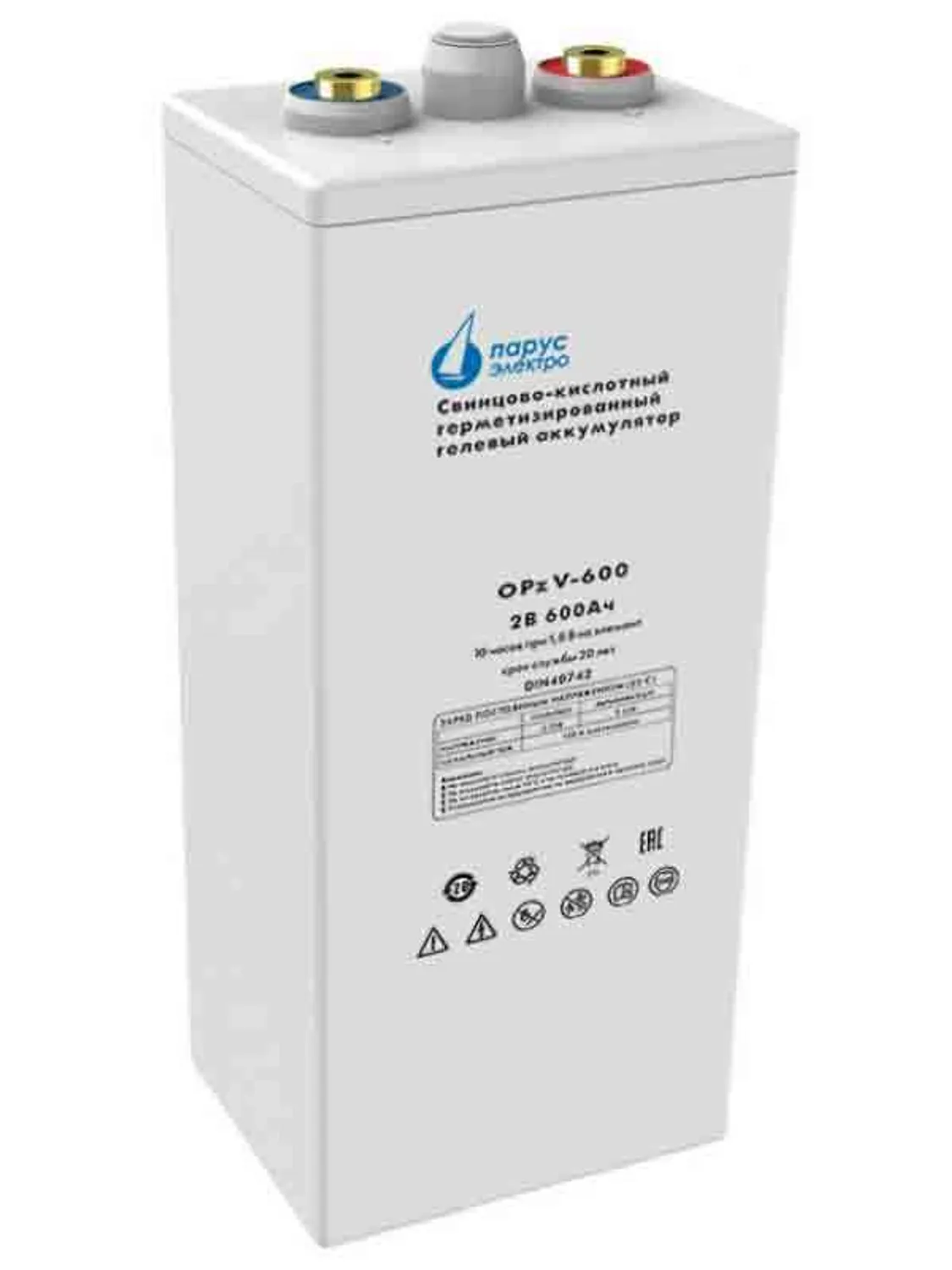 Аккумуляторы Парус Электро OPzV-2-600 серия герметизированных, свинцово-кислотных аккумуляторных батарей с трубчатыми положительными пластинами и гелевым электролитом,увеличенным сроком службы - до 20 лет. Трубчатые пластины позволяют уменьшить массу и габариты батареи при сохранении высоких электрических характеристик. Загущённый силикагелем SiO2 GEL электролит повышает температурную стабильность и увеличивает устойчивость к негативным последствиям глубокого разряда, обеспечивая восстановление 100% номинальной ёмкости после продолжительного нахождения в полностью разряженном состоянии. Батареи серии OPzV используются в энергетике, телекоммуникации и связи, промышленности, нефтегазовой и транспортной отрасли.