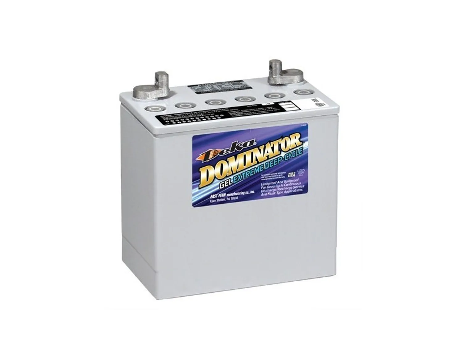DEKA 8G22NF гелевый тяговый аккумулятор глубокого разряда для питания электромоторов. Тяговая гелевая батарея полностью герметична, исключается протекание электролита, при работе отсутствует газовыделение. Гелевые аккумуляторы серии DOMINATOR и морской серии MARINE MASTER используют тиксотропный гелевидный электролит, это предотвращает разрушение пластин от вибрации, придает батареи чрезвычайную ударостойкость.