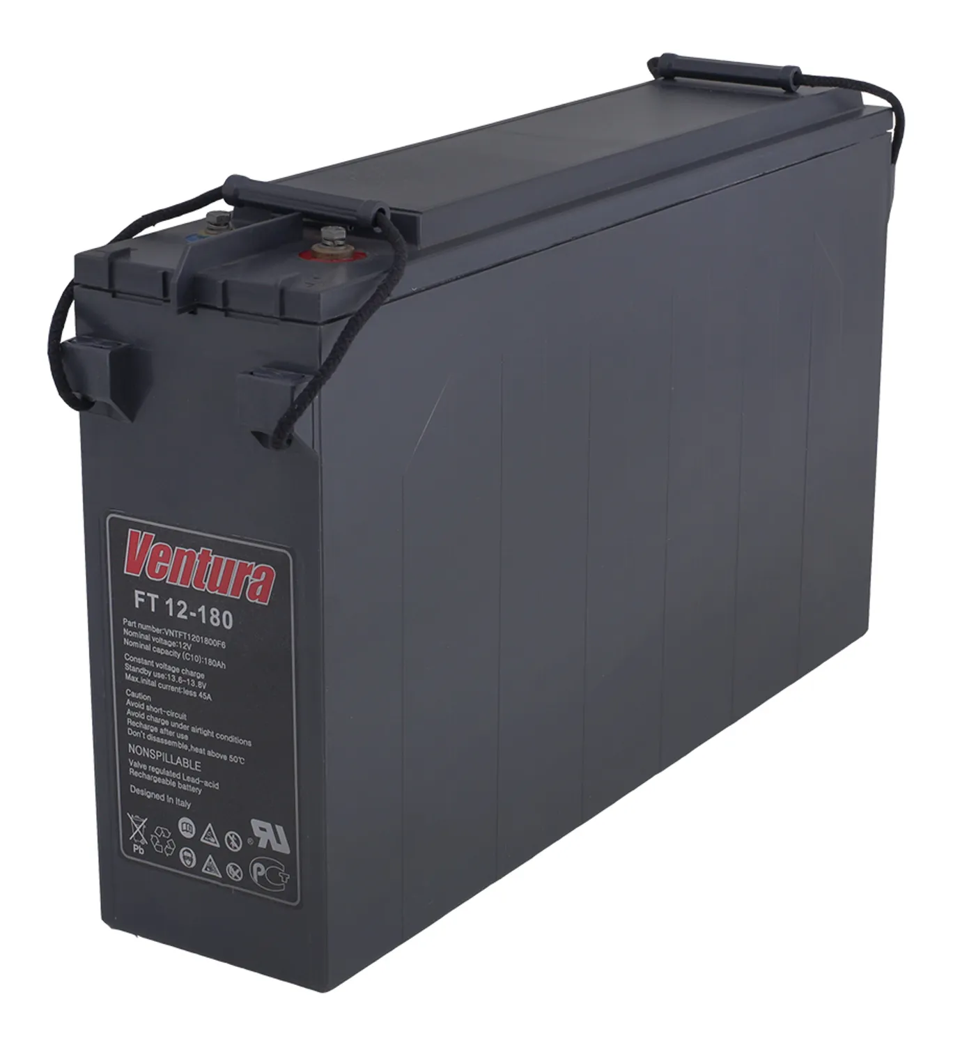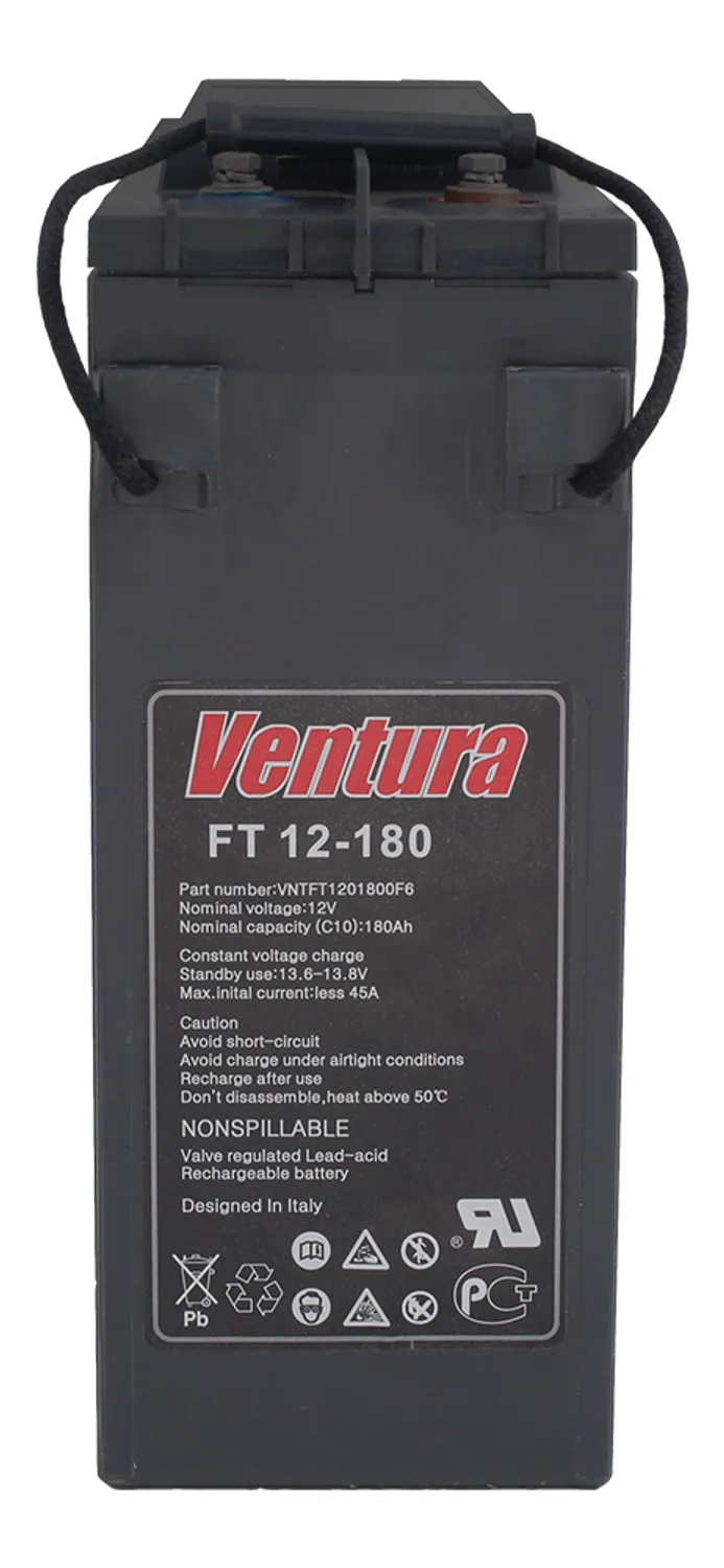 Герметизированные свинцово-кислотные аккумуляторы Ventura FT 12-180 изготавливаются по технологии AGM (технология AGM - аккумуляторы с жидким электролитом, впитанным в стекловолоконный сепаратор).Благодаря особенностям конструкции они обеспечивают высокую выходную мощность, превышающую более чем на 40% выходную мощность стандартных аккумуляторов, изготовленных по технологии AGM.