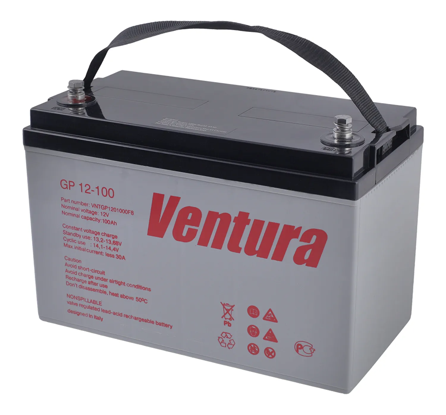 Герметизированные свинцово-кислотные аккумуляторы Ventura GP 12-100 изготавливаются по технологии AGM (технология AGM – аккумуляторы с жидким электролитом, впитанным в стекловолоконный сепаратор).