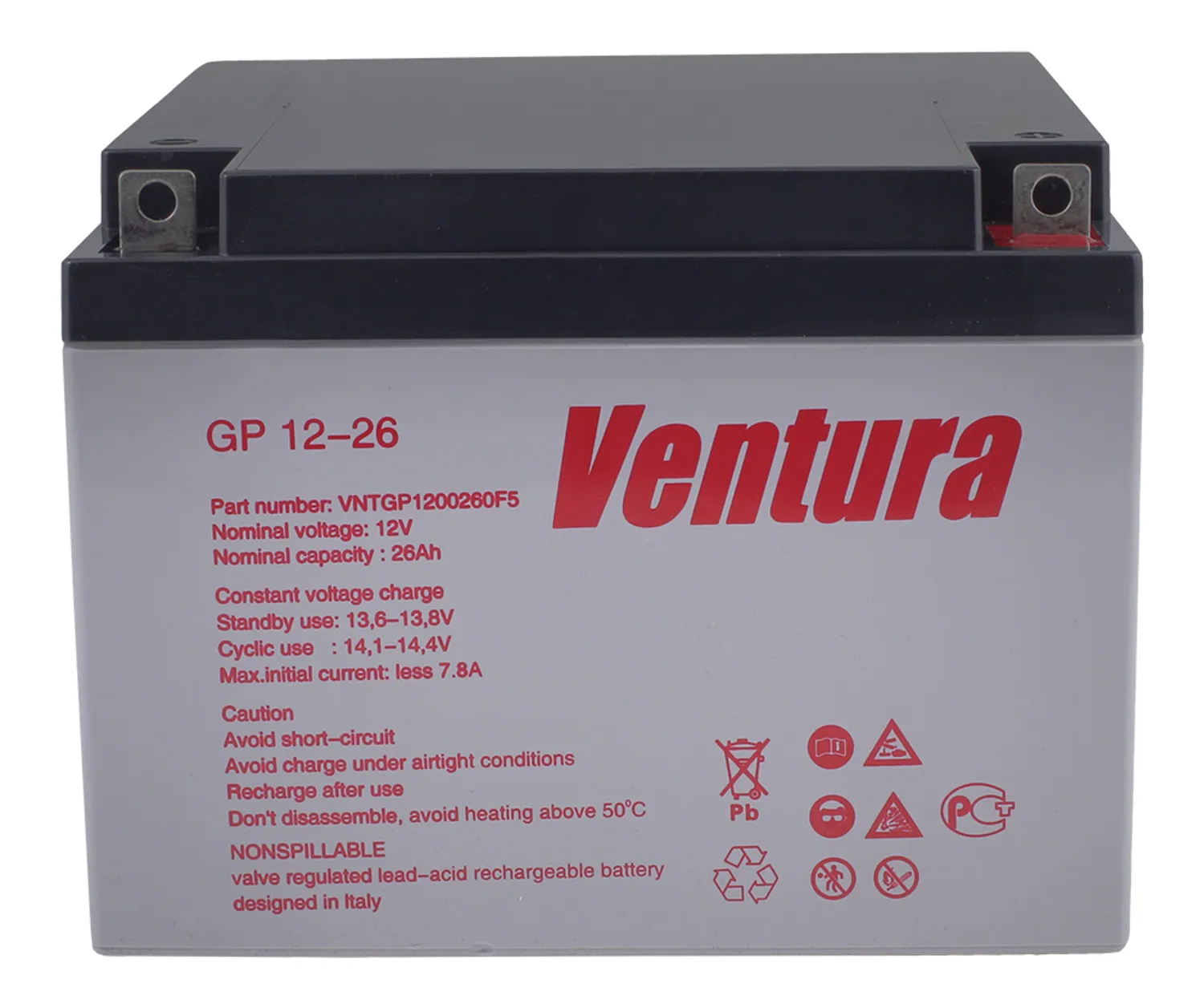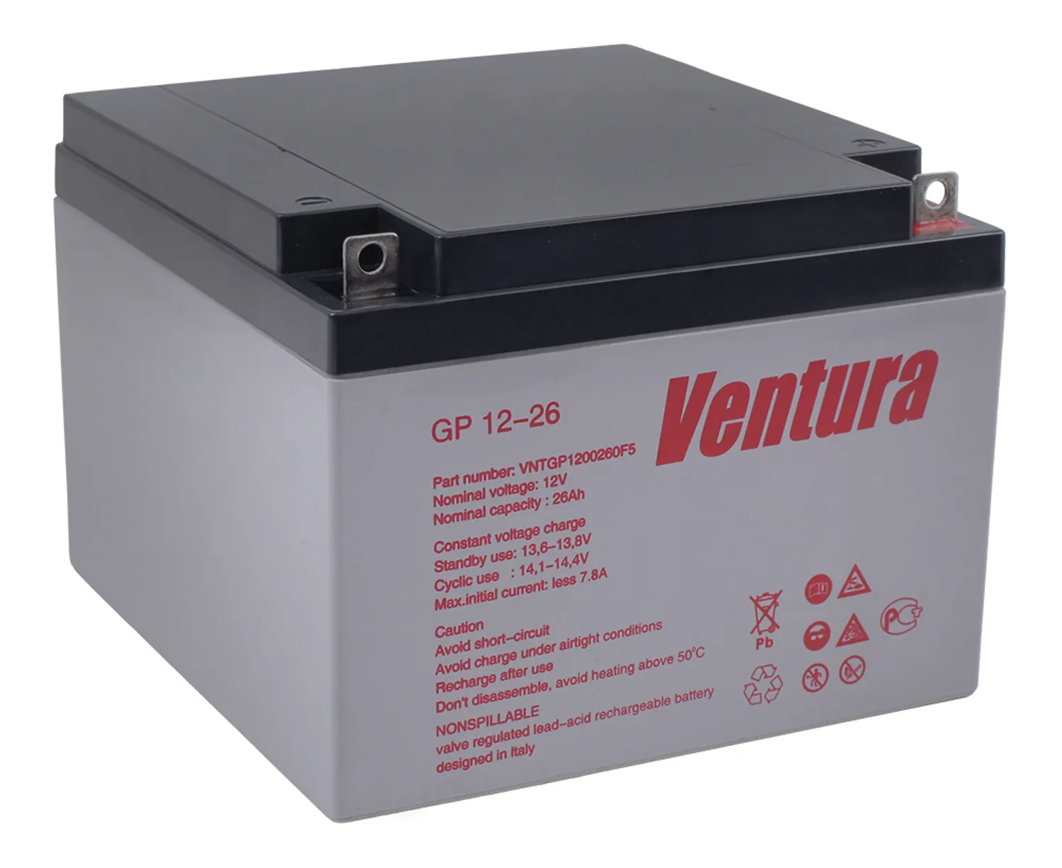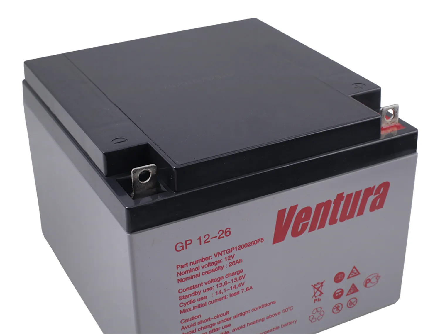 Герметизированные свинцово-кислотные аккумуляторы Ventura GP 12-26 изготавливаются по технологии AGM (технология AGM – аккумуляторы с жидким электролитом, впитанным в стекловолоконный сепаратор).