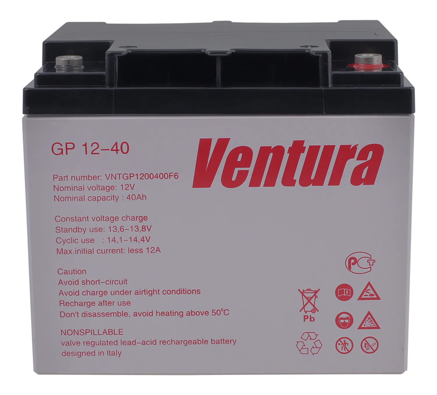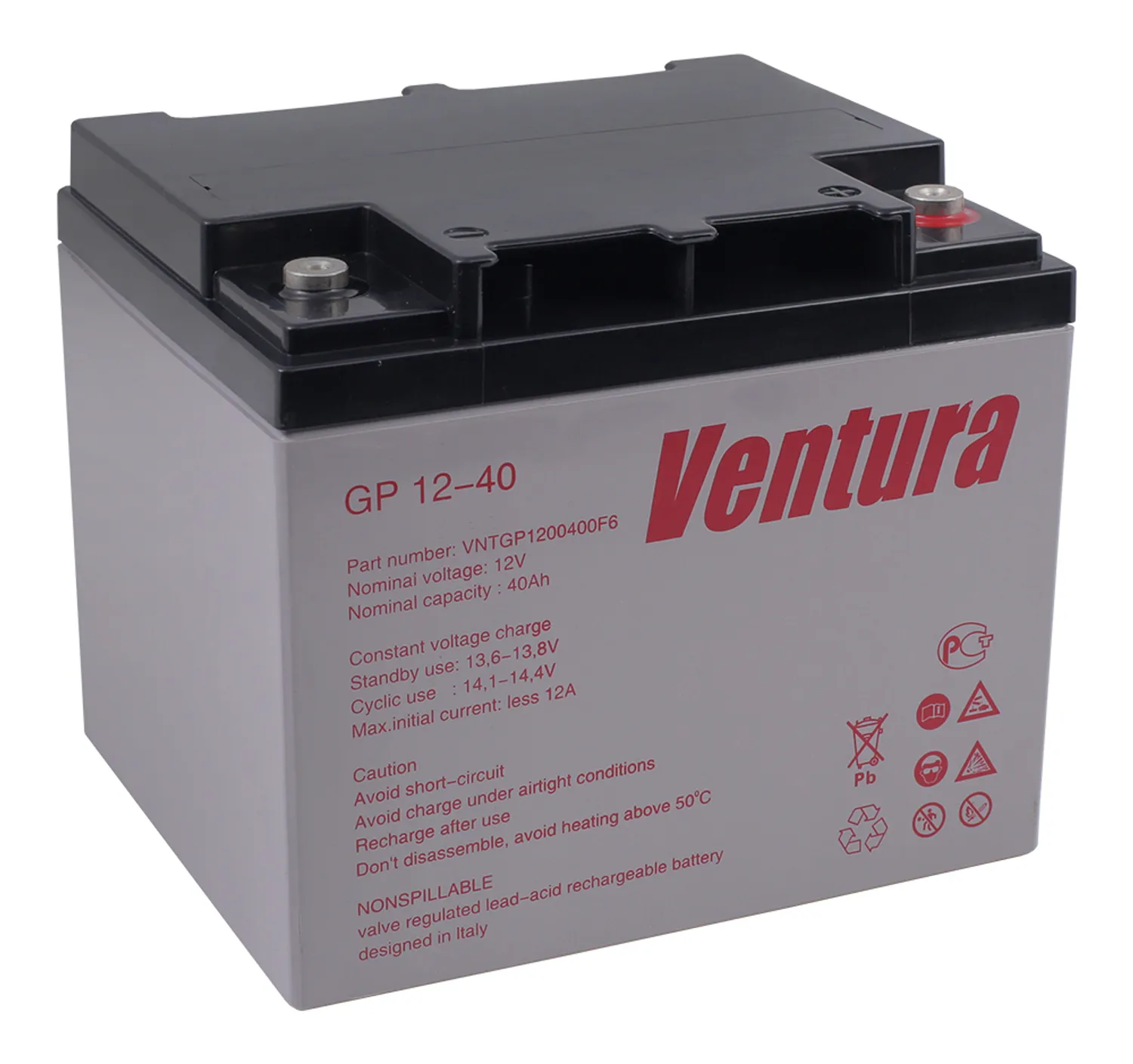 Герметизированные свинцово-кислотные аккумуляторы Ventura GP 12-40 изготавливаются по технологии AGM (технология AGM – аккумуляторы с жидким электролитом, впитанным в стекловолоконный сепаратор).