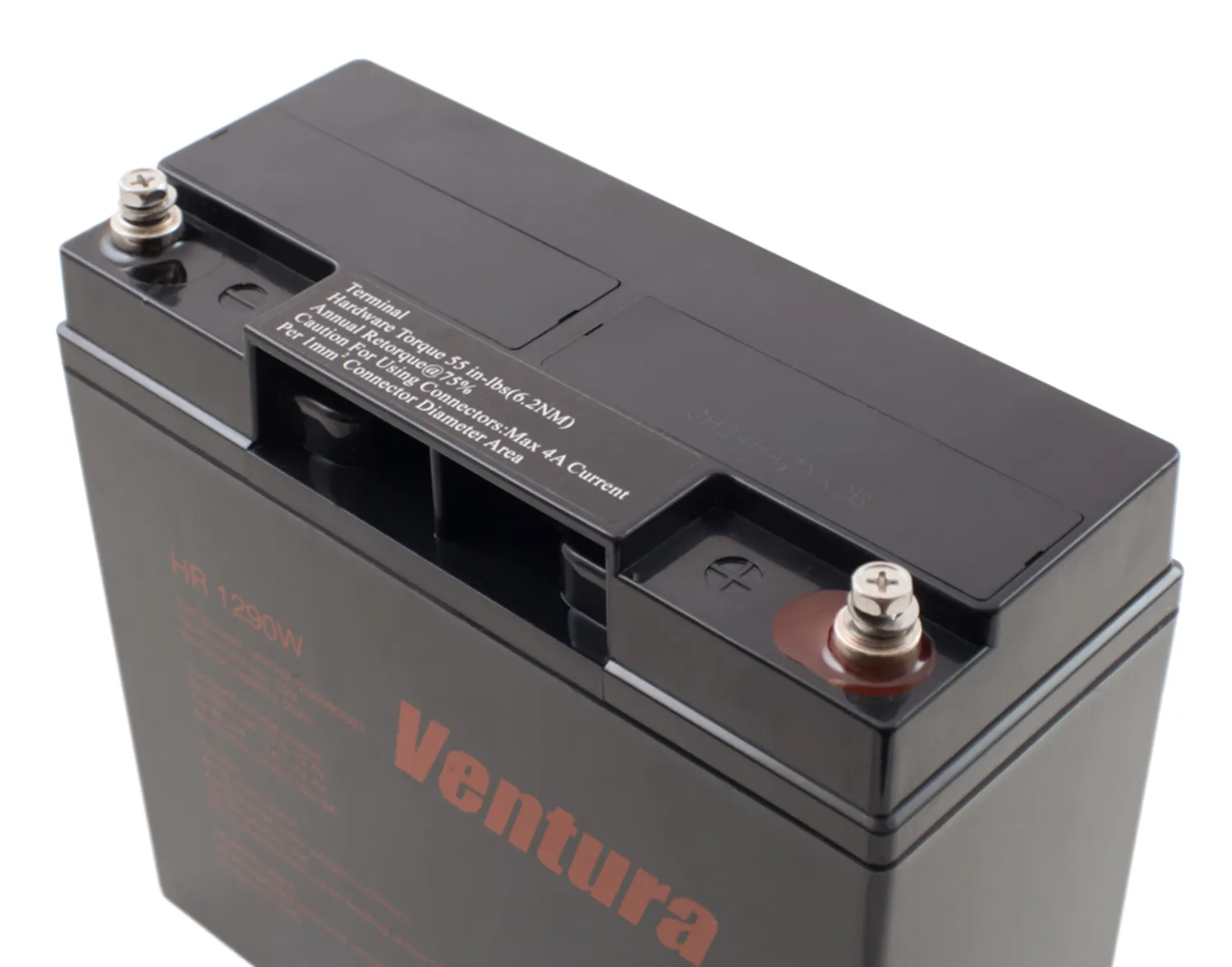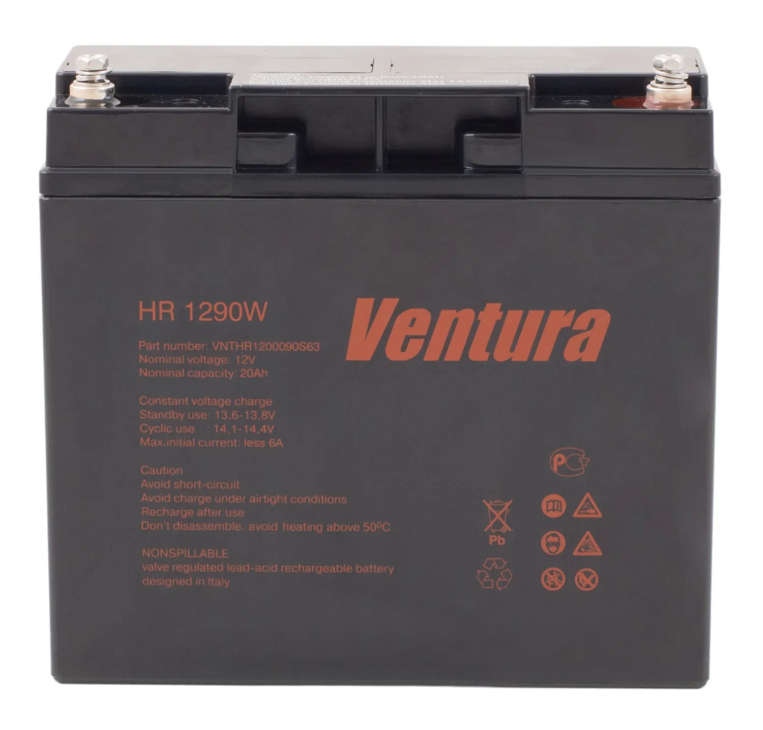 Герметизированные свинцово-кислотные аккумуляторы Ventura HR 1290W изготавливаются по технологии AGM (технология AGM - аккумуляторы с жидким электролитом, впитанным в стекловолоконный сепаратор).Благодаря особенностям конструкции они обеспечивают высокую выходную мощность, превышающую более чем на 40% выходную мощность стандартных аккумуляторов, изготовленных по технологии AGM.