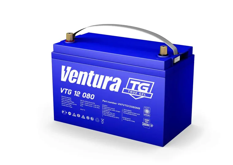 Тяговые аккумуляторы Ventura VTG 12 080 M8 - свинцово-кислотные герметизированные необслуживаемые моноблоки с намазными пластинами (тип VRLA) и гелеобразным электролитом. Являются отличным выбором во многих отраслях: электротранспорт, полоуборочная и подъемная техника, солнечные и ветряные системы, морские приложения, гольф-кары, электромобили, инвалидные электроколяски а также для ИБП, телеком и т. д.