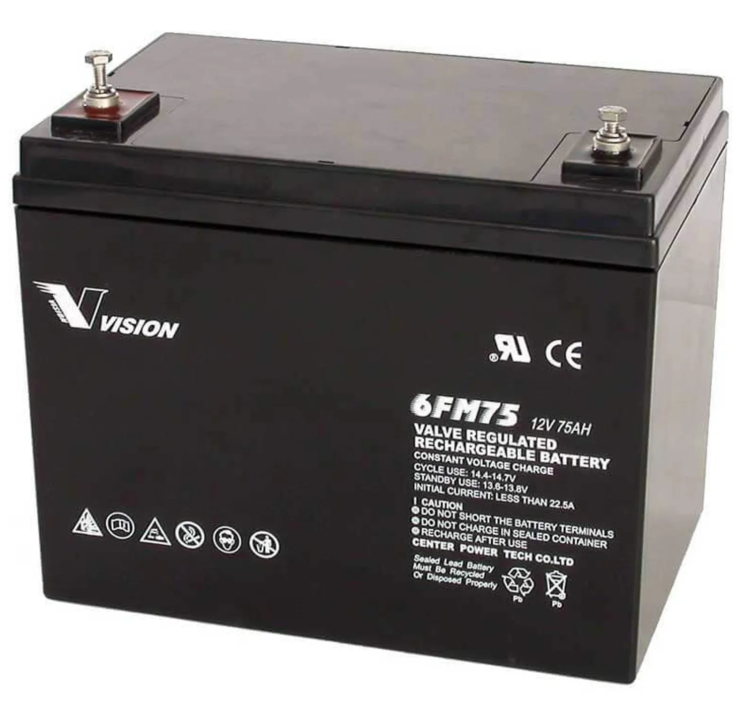 Аккумулятор Vision 6FM75X является стационарным свинцово-кислотным необслуживаемым и изготовлен по технологии AGM.