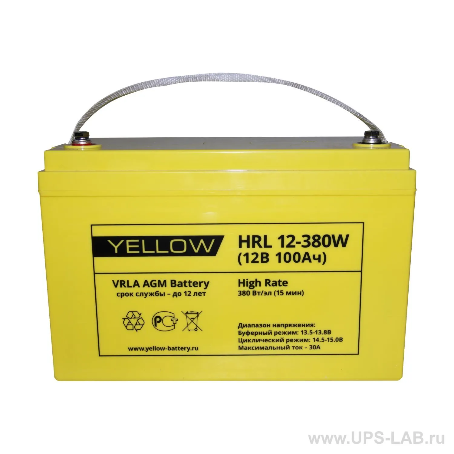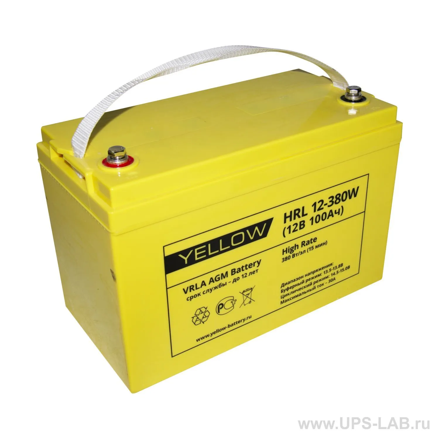 Серия YELLOW HRL 12-380W – специально разработанная серия для наиболее от-ветственных и требовательных систем бесперебойного питания, таких как ЦОД, ответственные узлы связи, и т.п. Эта серия – совокупность результатов исследова-тельской работы научного отдела производителя, современных технологий произ-водства свинцово-кислотных АКБ и кропотливого труда над выходным контролем качества. Батареи являются герметизированными с системой рекомбинации газов (VRLA), необслуживаемыми на протяжении всего срока службы. Изготавливаются по технологии AGM (электролит, абсорбированный в стекловолоконном сепараторе). YELLOW HRL 12-380W – обладает повышенной энергоотдачей благодаря сочетанию высокого качества сборки, утолщенным пластинам, а также использованию более чистых составов свинца. Значение в названии означает, сколько мощности (Вт) на ячейку выдает аккумулятор на 15 минутах.