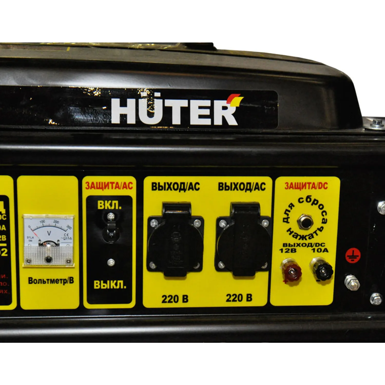 Генератор обладает одноцилиндровым 4-х тактным двигателем. В качестве топлива используется бензин. Удобное расположение крышки топливного бака позволяет осуществлять быструю дозаправку и контроль уровня топлива. На панель управления вынесен вольтметр, здесь же имеются контрольные индикаторы, тумблеры включения зажигания, активации защиты, клеммы на 12 В, две розетки для подключения потребителей на 220 В, клемма для заземления.