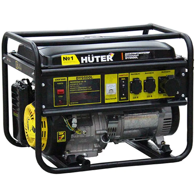 Генератор обладает поршневым одноцилиндровым 4-х тактным двигателем. В качестве топлива используется бензин. Удобное расположение крышки топливного бака позволяет осуществлять быструю дозаправку и контроль уровня топлива. На панель управления вынесен вольтметр, здесь же имеются контрольные индикаторы, тумблеры включения зажигания, активации защиты, клеммы на 12 В, две розетки для подключения потребителей на 220 В, клемма для заземления.