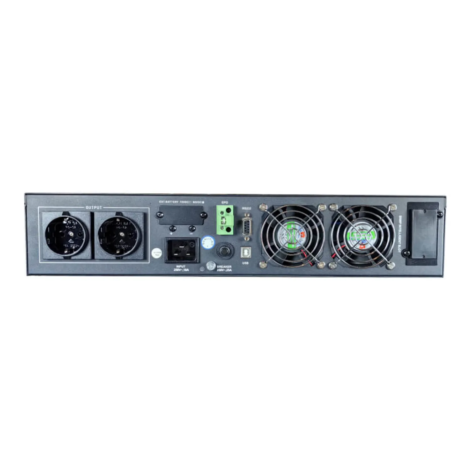 Дополнительно есть вход EPO для внешнего аварийного обесточивания нагрузки — например, от кнопки пожарной сигнализации.
