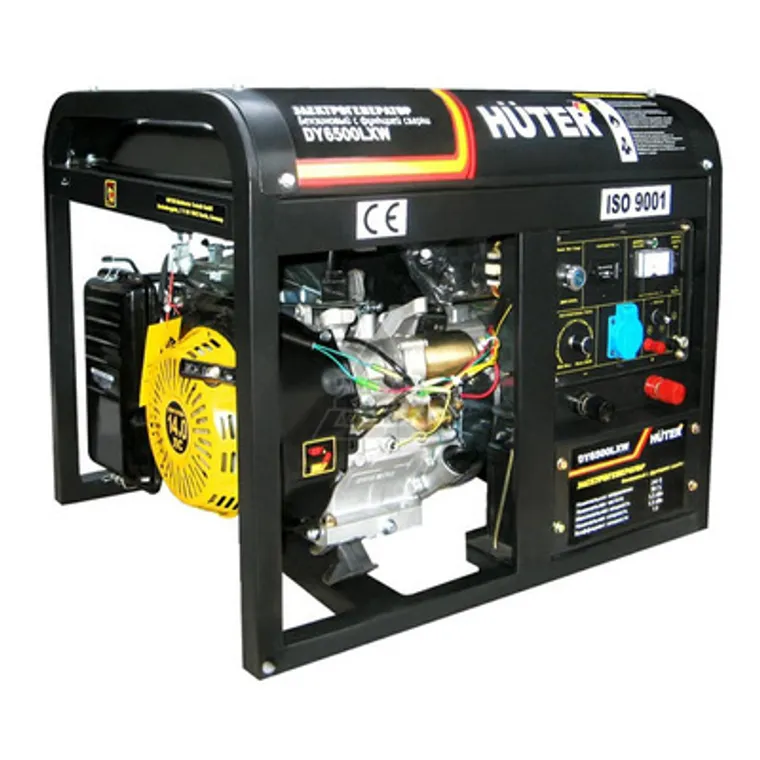 Генераторная установка Huter DY6500LXG является универсальной и мобильной системой обеспечения электроэнергией потребителей с напряжением 220 или 12 В. В оснащение агрегата входят поршневой одноцилиндровый четырехтактный карбюраторный ДВС, генераторная машина (альтернатор) со щеточным возбуждением, а так же специальные системы защиты и контроля. В качестве источника энергии используется бензин АИ-92 (запас хранится в баке, емкостью 22 л) или газообразное топливо из баллона или газопровода. Для этого в конструкции применен специальный карбюратор смешанного типа. Максимальная мощность, вырабатываемая альтернатором, составляет 6,5 кВт.