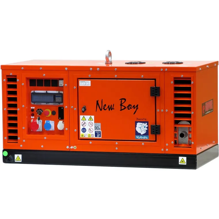 «New Boy» - максимально тихие электростанции с дизельными двигателями KUBOTA на 3000 об/мин, имеют жидкостное охлаждение и широкую линейку мощностью от 7 до 11 кВА. Серия генераторов EUROPOWER «New Boy» — новинка из Европы, самая тихая станция в своем классе, предназначены для тех, кто не хочет слышать шум работающего дизеля в своем загородном доме. Японские двигатели KUBOTA разработаны в соответствии международными требованиями стандартов качества и экологии, что является гарантией долговечности механизма, минимального уровня содержания вредных веществ в выхлопах. Благодаря усовершенствованному механизму воспламенения горючего, дизельные генераторы EUROPOWER, легко и быстро запускаются. Низкий уровень потребления топлива, компактный дизайн, простота в уходе, так же является огромным плюсом в эксплуатации дизельгенераторов EUROPOWER, на базе двигателя KUBOTA. Однофазные генераторы имеют бесщеточные альтернаторы марки Sincro и Mecc Alte, что существенно продлевает срок жизни станции. Все электроинтеграторы EUROPOWER оборудованы системой автоматической остановки двигателя при понижении уровня масла в картере. Стандартная комплектация: ES –Кнопка аварийного останова электрогенератора FG – Механический указатель уровня топлива FI4 – Защита от утечки тока более 30мА + штырь заземления FP – Электрический топливный насос на напряжение 12В h – Счетчик моточасов LE – Серьга для подъема краном MS – Останов агрегата ключом ODP – Помпа для слива масла OP – Останов двигателя при недостаточном давлении масла TM – Термомагнитный предохранитель– размыкатель цепи TP – Останов двигателя при перегреве охлаждающей жидкости V – Вольтметр Дополнительные опции: Дистанционный запуск Блок защиты от пробоя изоляции + амперметр + частотомер Шасси Запираемая прозрачная крышка панели управления
