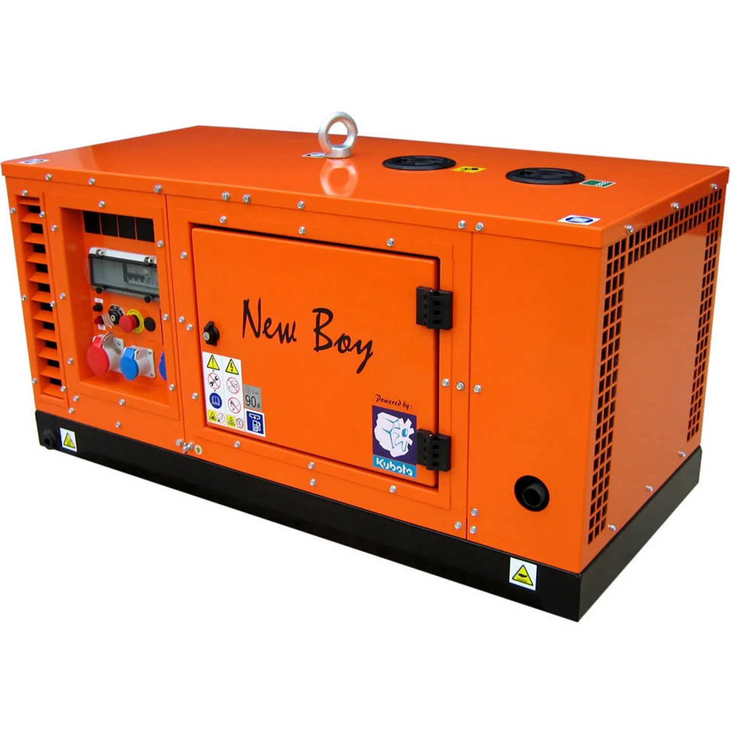 «New Boy» - максимально тихие электростанции с дизельными двигателями KUBOTA на 3000 об/мин, имеют жидкостное охлаждение и широкую линейку мощностью от 7 до 11 кВА. Серия генераторов EUROPOWER «New Boy» — новинка из Европы, самая тихая станция в своем классе, предназначены для тех, кто не хочет слышать шум работающего дизеля в своем загородном доме. Японские двигатели KUBOTA разработаны в соответствии международными требованиями стандартов качества и экологии, что является гарантией долговечности механизма, минимального уровня содержания вредных веществ в выхлопах. Благодаря усовершенствованному механизму воспламенения горючего, дизельные генераторы EUROPOWER, легко и быстро запускаются. Низкий уровень потребления топлива, компактный дизайн, простота в уходе, так же является огромным плюсом в эксплуатации дизельгенераторов EUROPOWER, на базе двигателя KUBOTA. Однофазные генераторы имеют бесщеточные альтернаторы марки Sincro и Mecc Alte, что существенно продлевает срок жизни станции. Все электроинтеграторы EUROPOWER оборудованы системой автоматической остановки двигателя при понижении уровня масла в картере. Стандартная комплектация: ES –Кнопка аварийного останова электрогенератора FG – Механический указатель уровня топлива FI4 – Защита от утечки тока более 30мА + штырь заземления FP – Электрический топливный насос на напряжение 12В h – Счетчик моточасов LE – Серьга для подъема краном MS – Останов агрегата ключом ODP – Помпа для слива масла OP – Останов двигателя при недостаточном давлении масла TM – Термомагнитный предохранитель– размыкатель цепи TP – Останов двигателя при перегреве охлаждающей жидкости V – Вольтметр Дополнительные опции: Дистанционный запуск Блок защиты от пробоя изоляции + амперметр + частотомер Шасси Запираемая прозрачная крышка панели управления