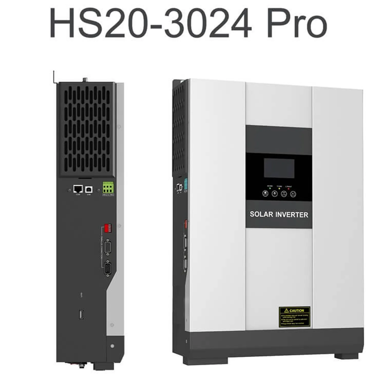 ИБП Hiden Control HS20-3024PRO — настенный гибридный источник бесперебойного питания мощностью 3 кВт с чистой синусоидой на выходе и встроенным MPPT-контроллером заряда от солнечных панелей (80 А, до 145 В). Работает от сети, аккумуляторов и солнца, поддерживает подмешивание солнечной энергии на нагрузку и отдачу излишков в сеть (grid-tie). До 3 устройств параллельно — суммарно до 9 кВт.