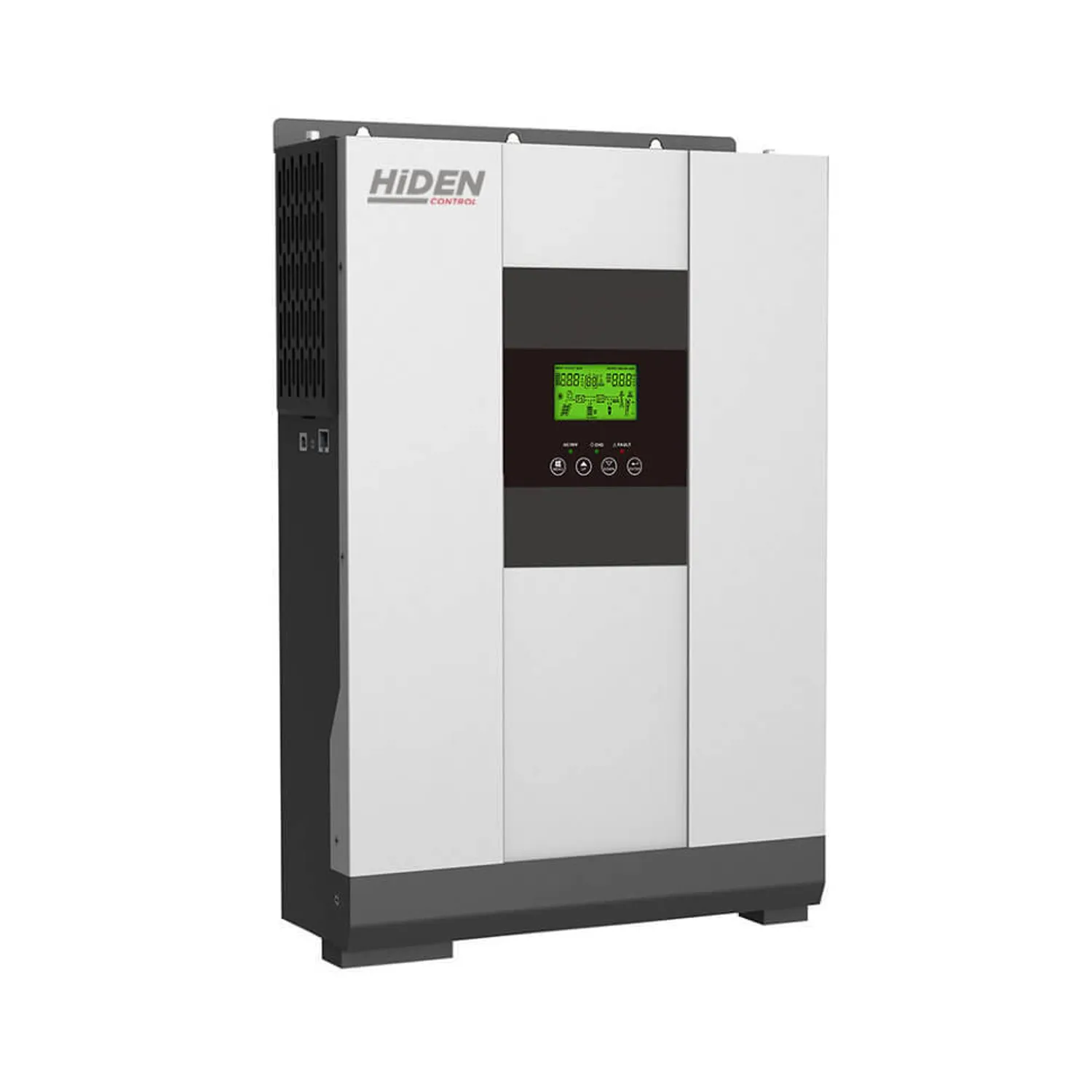 ИБП Hiden Control HS20-5048P — настенный гибридный инвертор мощностью 5 кВт для резервного питания загородного дома и дачи. Заряжает аккумуляторы от сети и солнечных панелей одновременно, поддерживает линейки АКБ 48 В ёмкостью до 250 Ач с возможностью параллельного подключения. Чистая синусоида на выходе, переключение на батареи за 6 мс.
