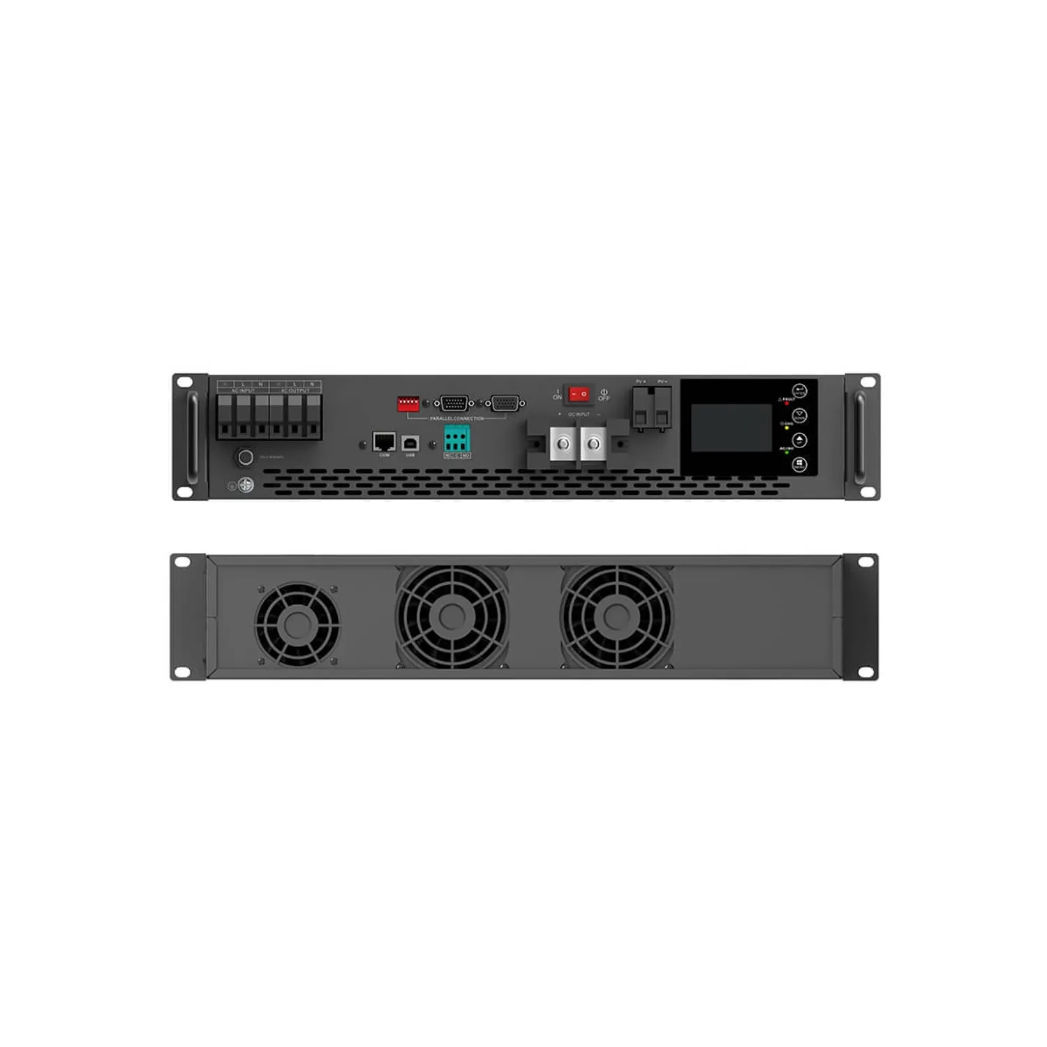 | Комментарий | Стоечное исполнение 2U Параллельное подключение до 3 шт (1ф/1ф или 3ф/3ф) Поддержка литиевых АКБ (LiFePO4) с BMS Холодный старт от АКБ (от 46В) Дистанционный мониторинг через Wi-Fi модуль (опция) Функция подачи энергии от АКБ в сеть (настраивается) Крест-фактор 3:1 |