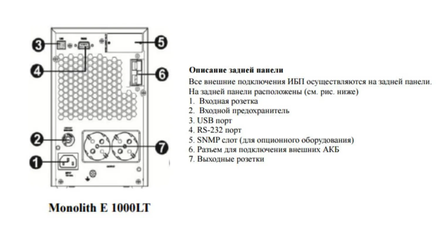 ИБП ELTENA Monolith E1000LT не содержат встроенных батарей и предназначены для подключения внешних батарей большой емкости, способных питать нагрузку в течение длительного времени.