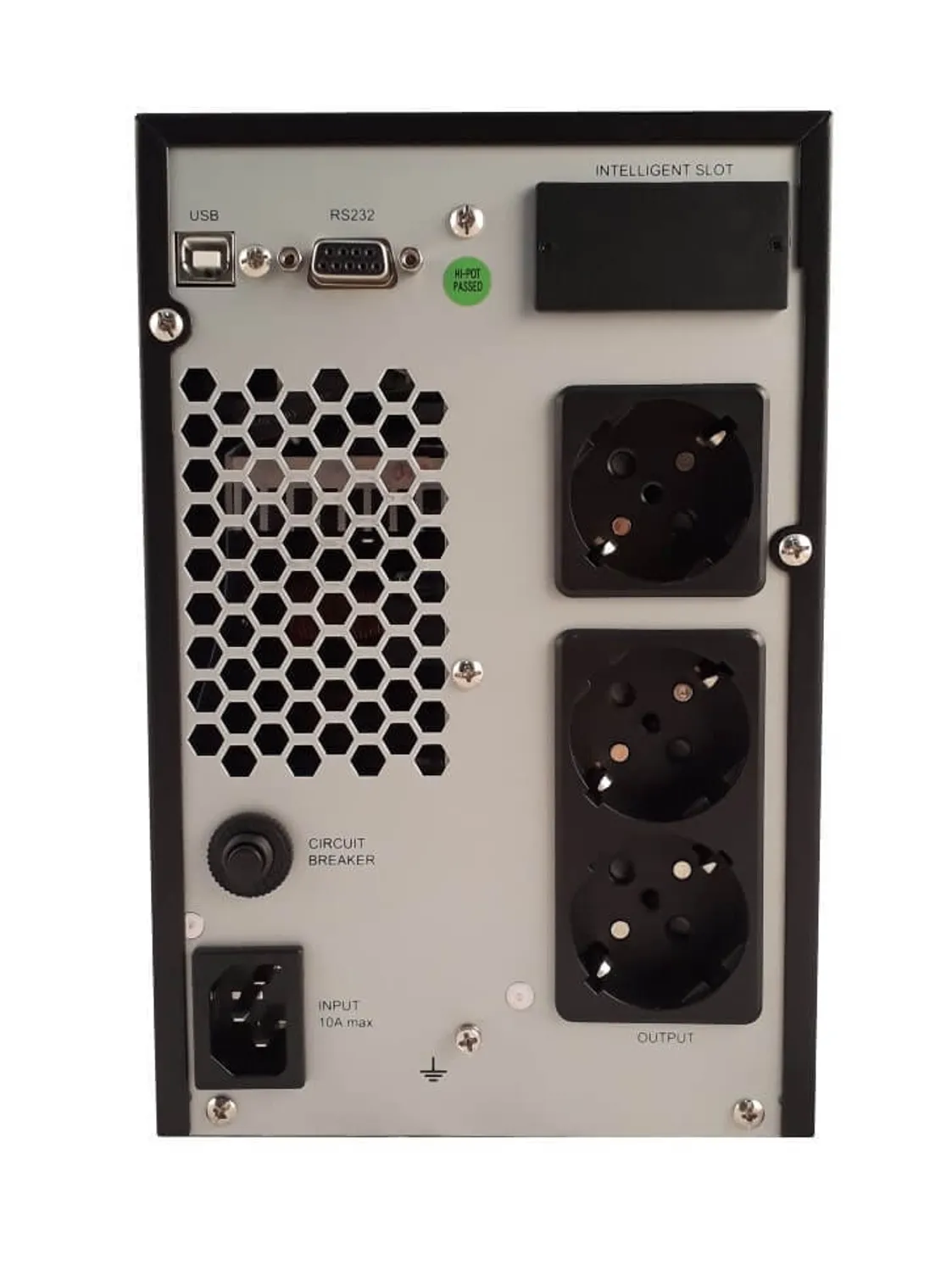 UPS ELTENA Monolith E1000LT - обладает расширенными коммуникационными возможностями: имеются порты USB и RS-232, а также слот для SNMP-карты DA-806 или платы «сухих» контактов, который может работать одновременно с любым из портов.