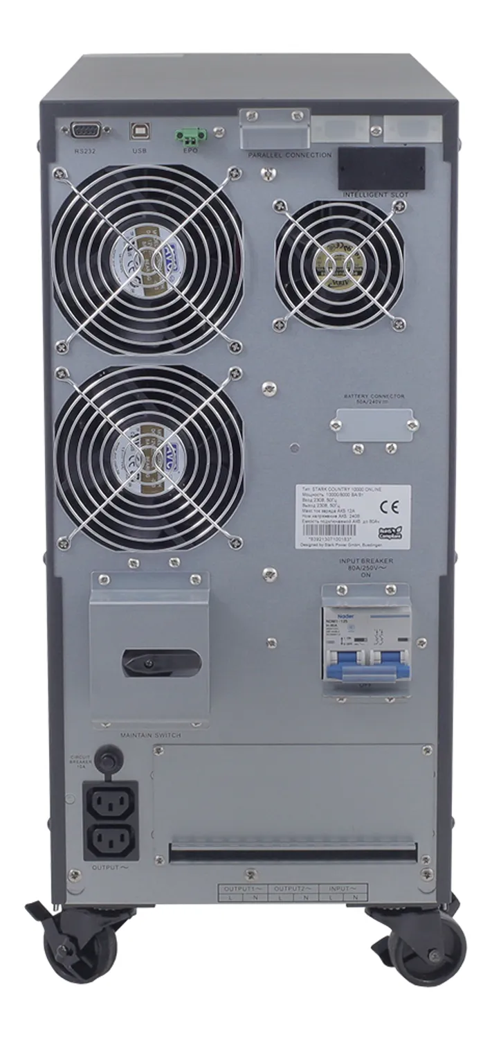 ИБП Stark Country 6000 Online, 4А работают по принципу двойного преобразования. Стабилизация выходного напряжения, возможность параллельного соединения для увеличения суммарной мощности, чистая фаза на выходе позволяют использовать их для защиты отопительных котлов, скважных насосов, медицинского оборудования, станков с ЧПУ, цифровой техники и пр.