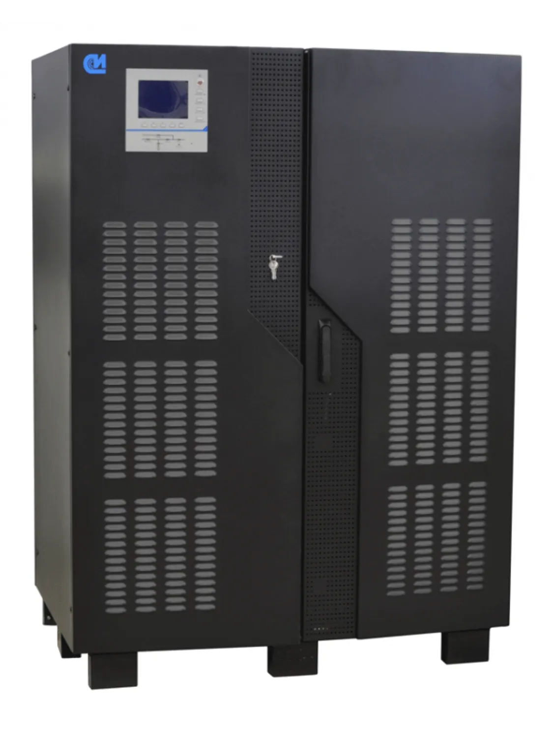 Онлайн ИБП СИП380Б100БД.9-33 двойного преобразования с трехфазным входом и выходом полной мощностью 100 кВА с подключением внешних батарейных кабинетов. Трансформаторный инвертор для гальванической развязки. Выходной коэффициент мощности 0,9. Возможность параллельной работы до 4 ИБП. Совместимость с генераторными установками и высокая перегрузочная способность.